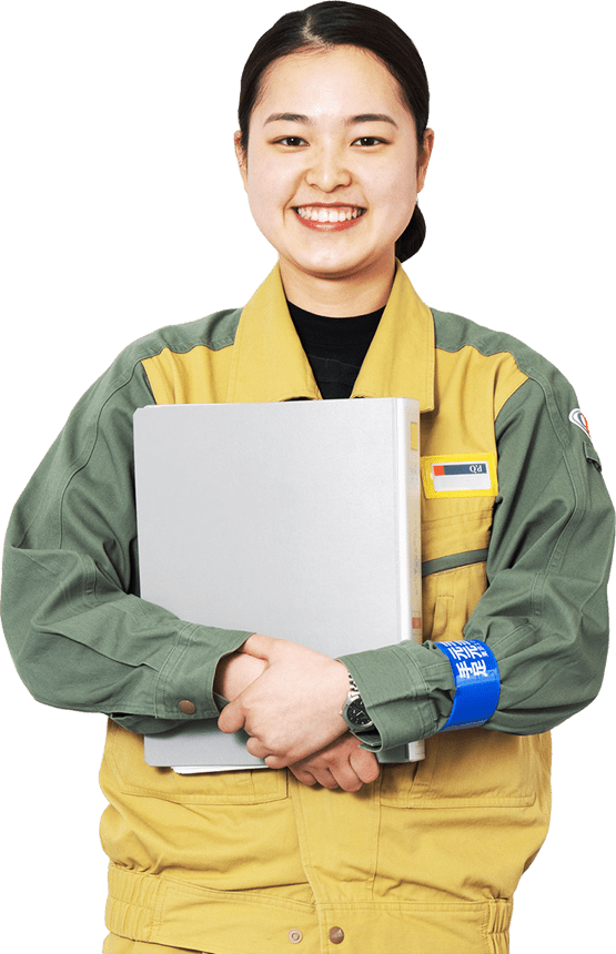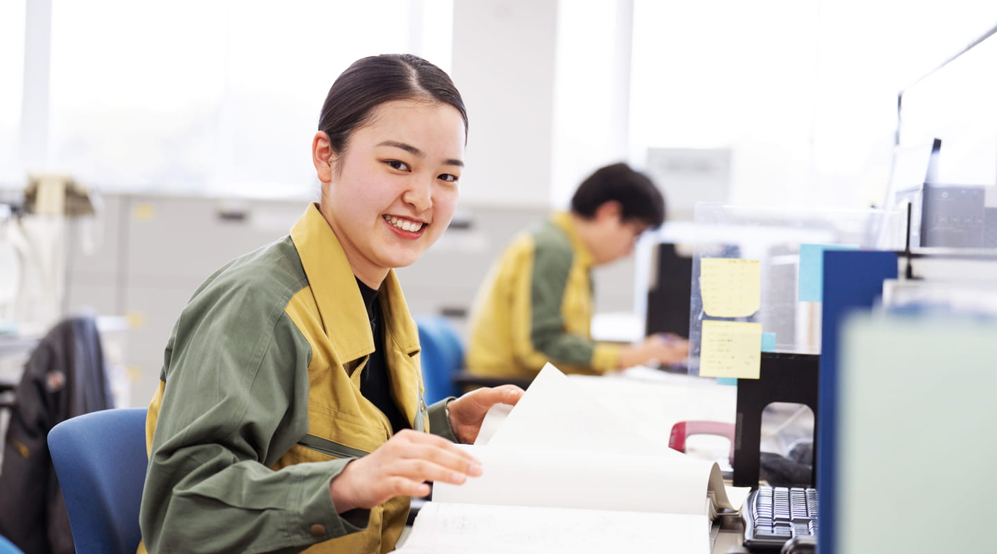 入社の決め手になったのは、火力発電、再生可能エネルギー、水力・変電、原子力発電といったほとんどの発電事業に携わり、公共設備工事や海外への事業展開など、幅広いフィールドで活躍できること。加えて、「沢山の人が一つのチームとなって、大きなものを作り上げる」という姿に感動し、自分もそういった仕事をしてみたいと思い、入社しました。現在は、溶接・検査センターの生産管理グループに所属し、主に火力・原子力発電所で使われる配管プレファブの製作工程・材料・図面等を管理する仕事をしています。顧客から支給される図面・材料のチェックから、工場での製作指示と製品の寸法確認、現地への出荷対応などを行っています。電気事業法に係る工事では、現地用に図面を作ったり、各種記録を作成したりと、溶接の専門知識が必要な仕事もあります。日々様々知識を得、それを活かすことで、関わっている多くの人たちから感謝され、大きなやりがいを感じています。